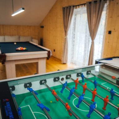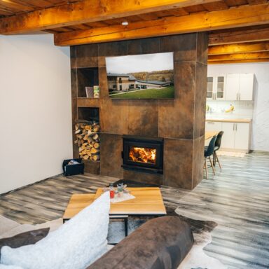 Môžete sa tiež do sýtosti venovať cykloturistike a prechádzkam v krásnej prírode alebo relaxovať v našom wellness. Naša chata je Baby friendly, to znamená, že je plne vybavená zariadením ako napríklad: jedálenská stolička, ohrievač fliaš, prebaľovací pult, vanička na kúpanie, babyfon s kamerou, jednou cestovnou a jednu klasickou detskou postieľkou. Vaše detičky sa zahrajú v detskom kútiku s hračkami a vonku ich čaká naozajstný detský domček so šmýkačkou a hojdačkou.